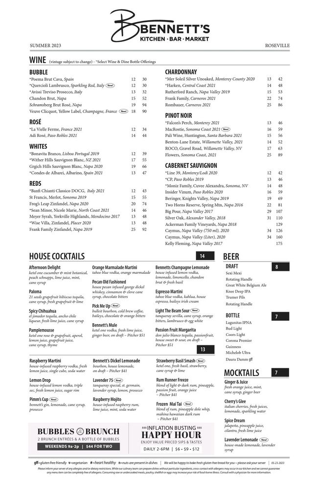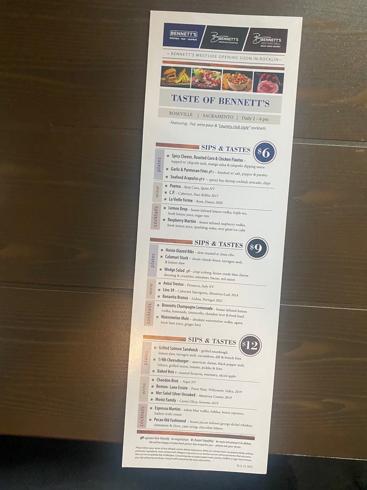 Specializing in New American cuisine, Bennett’s Kitchen Bar Market in Roseville, CA offers a diverse menu with options for every palate. Featuring vegan and vegetarian choices, this trendy and classy establishment provides a welcoming atmosphere for all. With convenient amenities like delivery, takeout, and wheelchair accessibility, Bennett’s caters to a variety of diners. From breakfast and brunch to lunch, dinner, and dessert, this restaurant has something for everyone. The option for private dining, as well as happy hour specials and a full bar, make it a great spot for any occasion. Providing sustainable practices like compostable containers and plastic-free packaging, Bennett’s Kitchen Bar Market truly stands out as a conscientious dining choice. Don't miss out on the delicious dishes and warm hospitality at this women-owned gem.